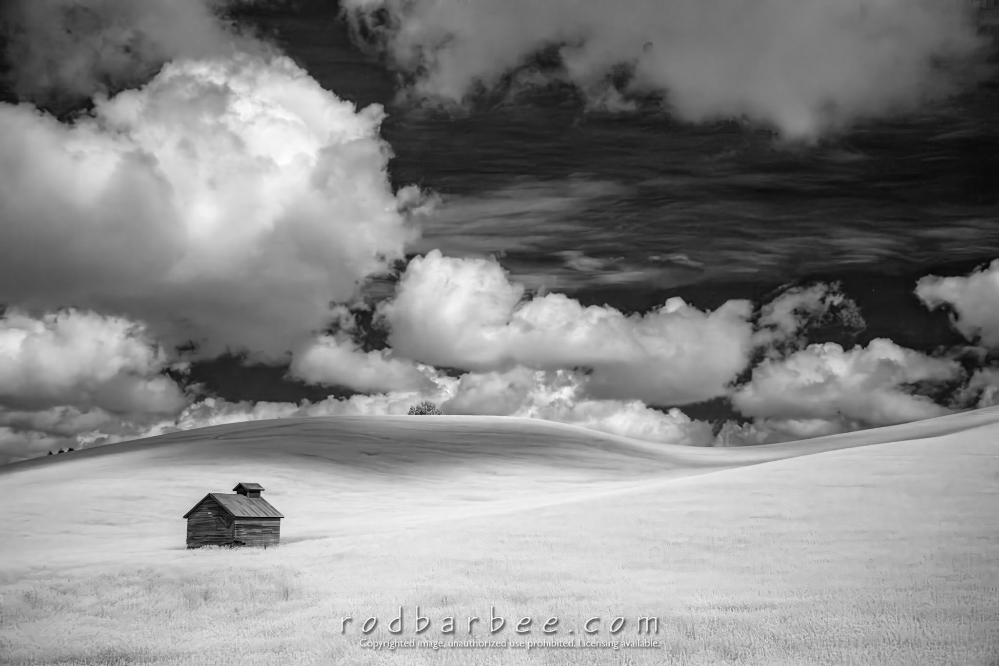 Small barn in canola field Infrared). Palouse region, WA.