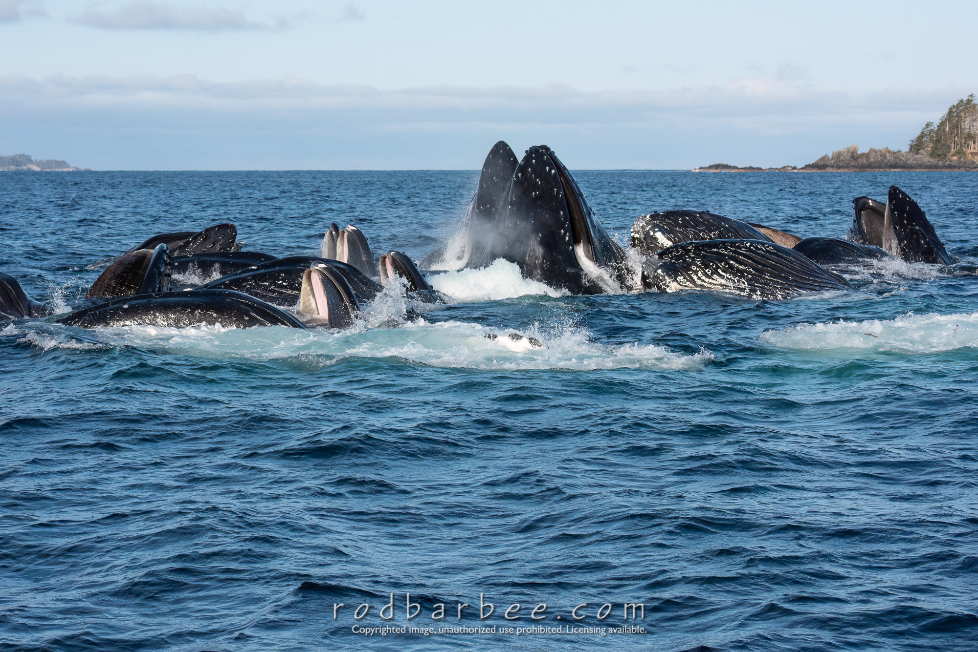 Humpback whales bubble-net feeding.
