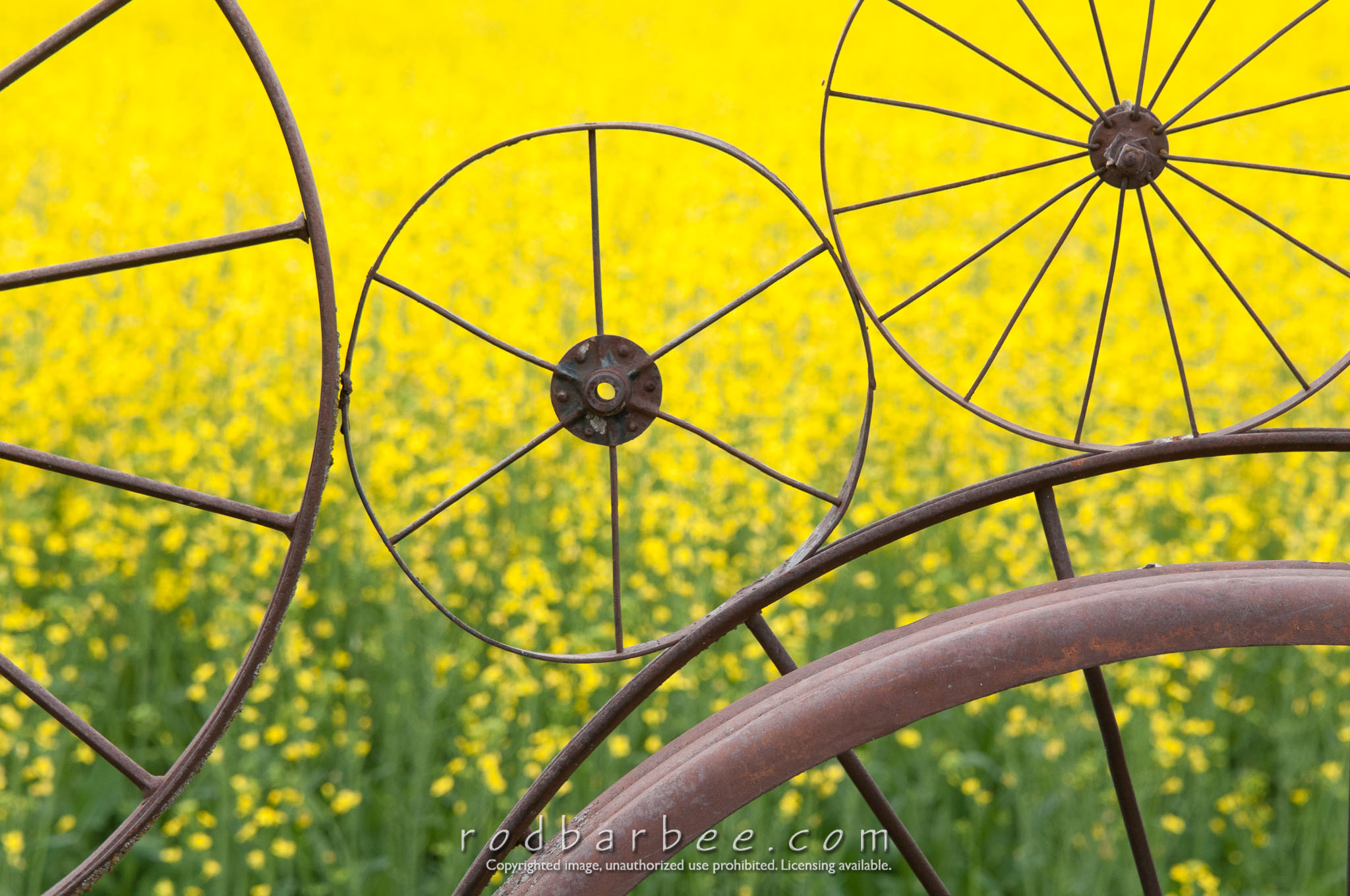 Canola behind wheel fence at the Dahmen Barn in Uniontown, WA